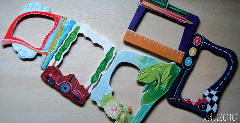 Estas molduras (que hão-de ser) foram desenhadas e serradas da madeira pelo J. há uns 2 anos e meio (?). Incumbida fui eu de as pintar, e ainda cheguei a começar, mas... Por falta de vontade, ou porque não tinha de ser, a coisa não fluiu e as pobrezinhas foram arrumadas.