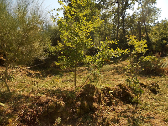 Ontem cortou-se o mato onde o tractor não pôde chegar. Um lugar fresco de carvalhos e castanheiros, no limite oeste da quinta