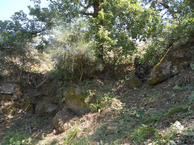 Escondidos por detrás da densa vegetação encontramos recantos com muros imponentes e rochedos. E posso jurar que neste sitio ouço água. Água cristalina e fresca que corre por debaixo das rochas.