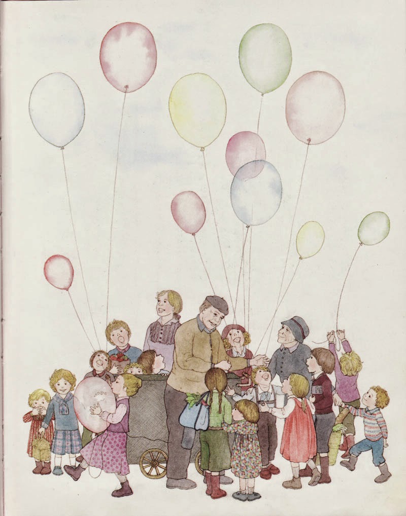 Há dias, (isto vai parecer complicado!) num post antigo de um anterior blogue da autora de um blogue novo, re-encontrei, emocionada, um livro que tive em criança. Um livro do qual já tinha esquecido o título, um livro que perdi no tempo, que ficou para trás numa casa antiga provavelmente... Só não tinha esquecido aquele apetitoso balão cor-de-rosa e a suavidade do maravilhoso desenho e da aguarela de Satomi Ichikawa. Porque, embora eu me tenha esquecido do livro, as suas imagens estavam cá, num qualquer lugar da minha memória, apenas à espera de uma brecha de luz para de novo tudo voltar. Este foi um dos meus preciosos livros da infância. Não era meu e das minhas irmãs, como a maioria deles. Este era mesmo só meu... ou talvez não fosse só meu, mas eu quisesse que assim fosse por tanto gostar dele! E eu percorri as suas páginas centenas e centenas de vezes, até, quem sabe, de tão manuseado as suas folhas se rasgarem, desfazerem em pó, se perderem no tempo. Como pude eu esquecê-lo?...